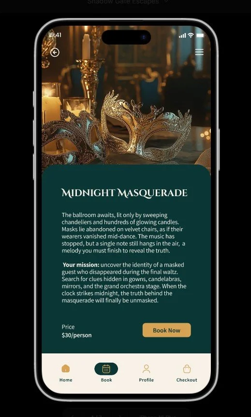 Project Overview: This project is a booking service app available on both iOS and Android, designed for individuals seeking a fun, affordable, and interactive group experience. The app targets users who enjoy puzzles, teamwork, and immersive challenges, making it ideal for friends and families looking for a socially engaging adventure.